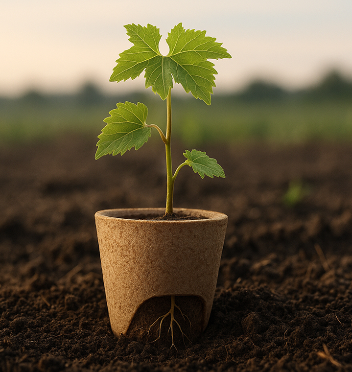 A Plantum valoriza resíduos orgânicos, elimina plásticos e fecha o ciclo com dados: sensores na cápsula + IA para orientar decisões no arranque, dentro de práticas de agricultura de precisão.